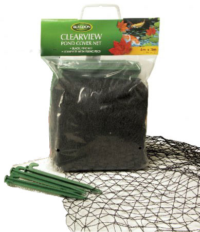 This fine black net covers the pond and pegs ( provided) down at the side to keep it tight. It is usefull in the autumn to prevent leaves going into the pond and rotting causing the water to go off. However its most common use is to prevent birds, particularly herons from raiding the pond and eating all the fish.