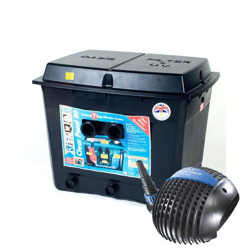 For ponds up to 50000 litres this pond filter has an 80 watt Uv built in. Recommended pump is the Aquashift Pro 12000 pond pump. Clarity & Purity advanced 7 stage filtration with high powered U.V.C and quick action back flush (De-Sludge) system.