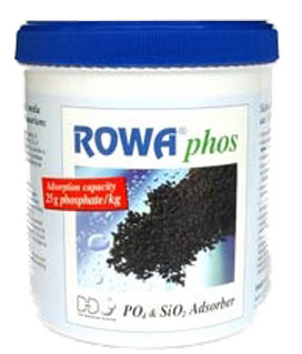Extreme high phospate (PO4) adsorbent. Needs very little room in the filter system. Simple handling. Quick visible sucess during an algae bloom. No influence on PH after an hour. No output of substances such as aliminium (which can accur using other substances). Avoids Phospate - related damage to lime synthetics in calcareous algae and stone gravel etc. Rowaphos should be used when setting up a new aquarium to avoid phospate building up in rocks and gravel. 5Kg pack treats 10000-20000 L Freshwater or 5000- 10000 L Saltwater. (at 1ppm phospate)