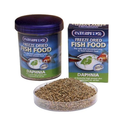 Interpet Daphnia is a nutritious and delicious natural food, that has been gamma radiated to ensure they are completely pathogen free prior to being freeze dried. A excellent treat to be added to the diet of all coldwater, tropical and marine fish.