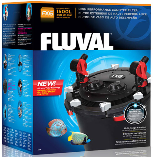 The fluval FX6 for aquariums up to 1500 litres. The Fluval Fx6 External Filter is a high performance aquarium canister filter. The very latest design from Fluval offering super quiet operation.