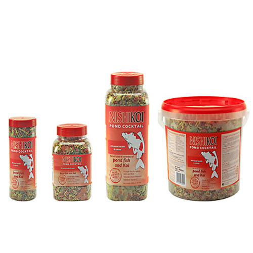 Nishikoi Pond Cocktail Food is a blend of sticks, pellets and flakes for all of your pond fish.