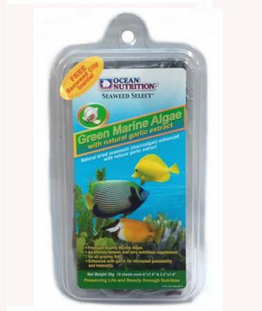 The Ocean Nutrition Green Marine Algae has been designed to be used as a supplement to other foods and it can also be considered as a great holiday food. The seaweed can easily be placed into your tank or aquarium using feeding clips or by simply wrapping a piece of the seaweed (55 gallon community tank = approx 2 inches by 3 inches seaweed) around an elastic band and then attach the band to a rock in the aquarium so that your fish can eat at their own leisure, any pieces of the seaweed which come lose should be re attached to the rock and any pieces which are left over 24 hours should be removed. Ideal food source for:- Marine Tangs. Angels. Wrasses. Damsels. and some types of Butterfly Fish. And there is also available Ocean Nutrition Brown Seaweed. Ingredients:- 100% Natural Dried Seaweed, 100% Digestible and high in Vitamin C.