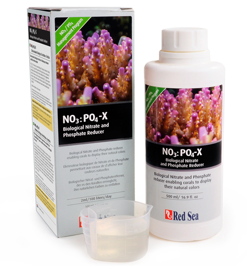 Red Sea NO3: PO4-X is a unique complex of a number of different carbon molecules and other organic-bonded elements that enable a controlled biological reduction of algae nutrients (nitrate and phosphate) by naturally occurring nutrient reducing bacteria that exist in all aquariums.