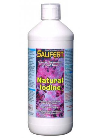 Salifert's Natural Iodine supplement contains a large portion iodate and also some iodide in similar proportions as NSW. All ingredients are of a pharmaceutical quality or even better. This ensures that no unwanted elements are added to your valuable aquarium.