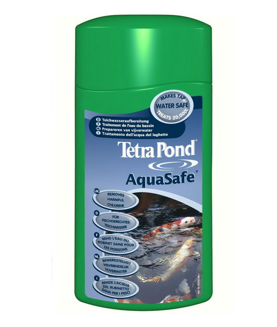 Treats 10000 Litres / 2200galls. Makes tap water safe for fish by removing harmful compounds and adding beneficial substances Contains special compounds that eliminate chlorine and chloramine, and bind up heavy metals. Contains colloids that coat the fish, protecting them against infection Unlike most water conditioners, AquaSafe leaves no residues and is completely broken down to harmless substances