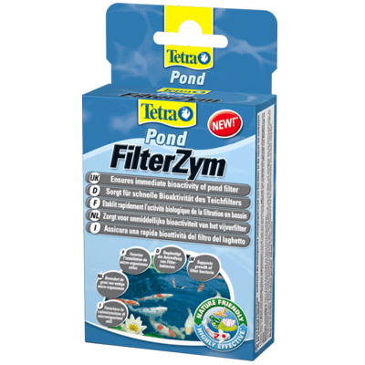 Speeds the development of new pond filters Promotes the development of filter bacteria, for faster and safer stocking of fish Provides an ideal environment for natural filter bacteria to grow Ideal for use in new ponds, or following filter maintenance Helps accelerate the breakdown of toxic ammonia and nitrite Filter bacteria breakdown toxic ammonia and nitrite, and are therefore essential for a healthy pond. In new filters, or following maintenance, these bacteria may not be present. FilterZym provides an environment in which these bacteria can establish themselves more quickly, thereby supporting a healthier environment and the safer stocking of fish. Application Break open the capsules and sprinkle powder directly over filter media. Use 3 capsules for new filters; following maintenance; or when replacing filter media. For maximum effect, leave the pump switched off for 2hrs following use. 2 capsules can be added every 4 weeks for long-term biological activity.