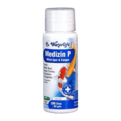 Waterlife Medizin P treats a wide range of parasite infestations and infections such as White Spot, Velvet, Costia, Trichodina and Cryptobia, in addition to it's fungicidal properties. Medizin P can also be used as a disease preventative, especially during Spring and Autumn when parasites and pathogens peak in numbers.