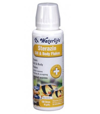 STERAZIN is used or the control of gill and body parasites which cause fish to flick when no symptoms are visible to the unaided eye. STERAZIN will also aid the control of internal parasites such as Round Worm, Thread Worm, and Intestinal Worm. In orderto destroy the parasites in all stages of their life cycle you will need to use the product on days 1, 3, 6, 8 and 10.