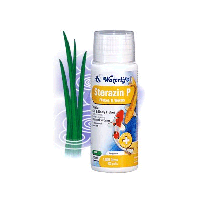 Sterazin P is formulated for the control of Gill and Body Flukes. Flukes are invisible to the naked eye but cause fish to "flick" and "scratch". Flukes are normally the correct diagnosis, when fish are demonstrating this behaviour and no other symptoms are present.